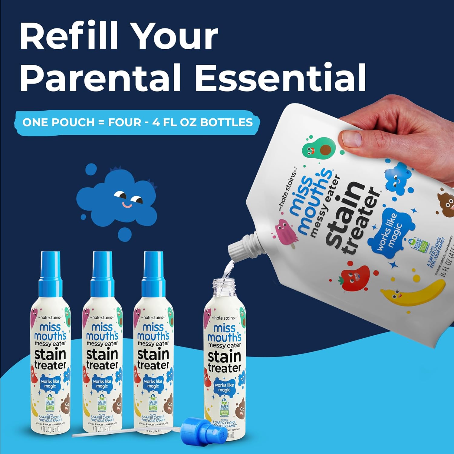 - SAFER CHOICE CERTIFIED Our stain remover is proudly EPA Safer Choice certified, giving you peace of mind that it meets your high standards for health and safety. Miss Mouth’s Messy Eater Stain Treater formula gets the job done while being a safer choice for you and your family.